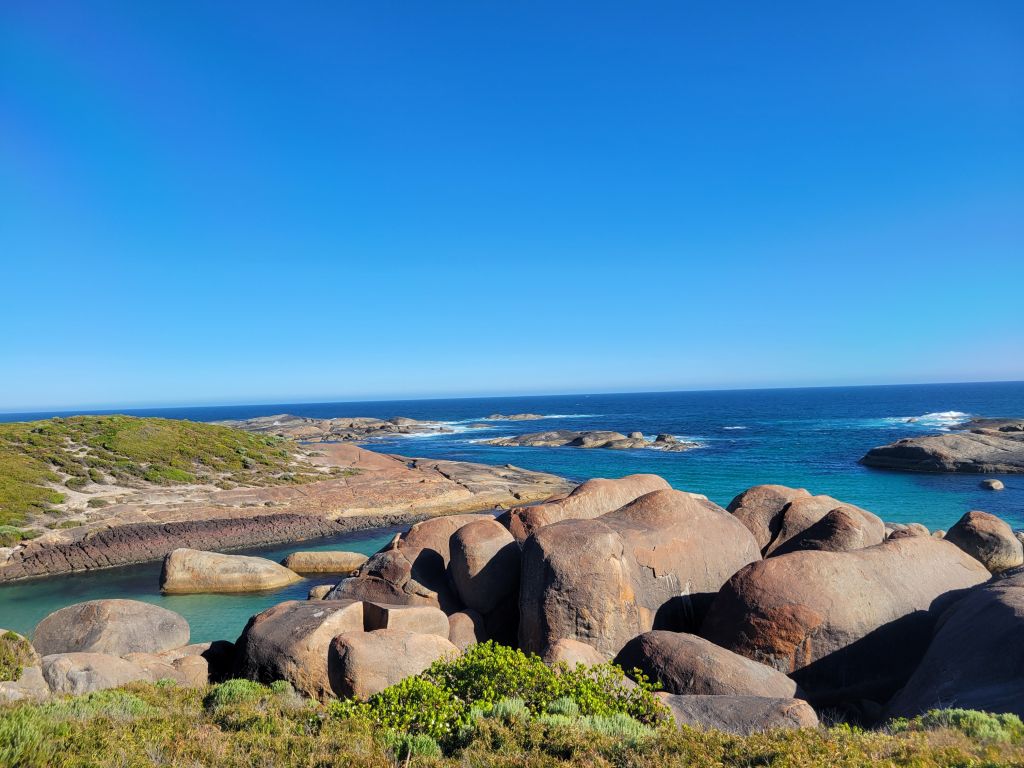 After another little while in Perth not doing much it was time to head out for another quick trip. This time I set my sights on a loop down to Walpole, across through Denmark to Albany (these are the real names of the towns), and then back up to Perth. Walpole is famously a place to see giant trees—tingle, jarrah, karri, and marri, among others. They’re all different varieties of eucalyptus, maybe except the marri, and they make for beautiful forests of tall bare trunks with spreading canopies up above. On the first day I went for a lovely stroll through the forest to a spot where they’ve made boardwalks around a couple of especially big tingle trees. The giant trees here are similar to the sequoias back in the states in that fire is an important part of their lifecycle, clearing the underbrush and triggering their seed pods to open. They’re also similar in that the adult trees are very fire resistant, and you often see live trees where the base of the trunk is hollow and burnt out. There used to be a tree that any visitor could come drive their car into, but they eventually (after that tree fell down, I think) realized that the trees have shallow roots and trampling them hurts the trees, much less driving over them. I also hiked Mount Frankland, a nice chill walk through beautiful forest and up onto a granite summit.