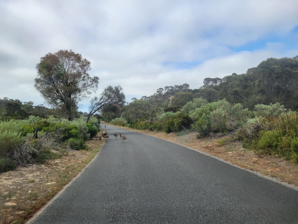 I’ve spent the past few days driving around the outside of the Eyre Peninsula, which is basically just farmland in the middle and a string of cute beach vacation towns with massive grain silos along the coast. It’s pretty and sleepy and that’s about it. One highlight was going to Coffin Bay National Park, where I went for a beautiful couple hour stroll and saw lots of emus, including one with a gaggle of babies following it.