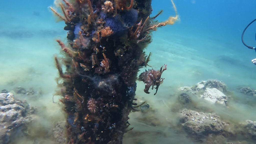 Well, as is always the case, an extended period without much to do has resulted in me slacking on the blog. I spent another few days kicking around Perth, not doing much, but did manage to get my tire situation sorted. Then it was time to head south. SCUBA at the Busselton jetty was really, really fun. It was a bit of a production renting the gear, getting our waivers sorted, and getting out to the dive spot, but the dive itself was just beautiful. It’s delightfully simple, just swimming out and back around and between the supports of this jetty. The pillars are covered in all kinds of incredibly colorful coral, which was a nice change of pace from the less colorful hard corals that I’d seen up around Exmouth. We also saw some fun critters, including an octopus and a couple of cuttlefish.