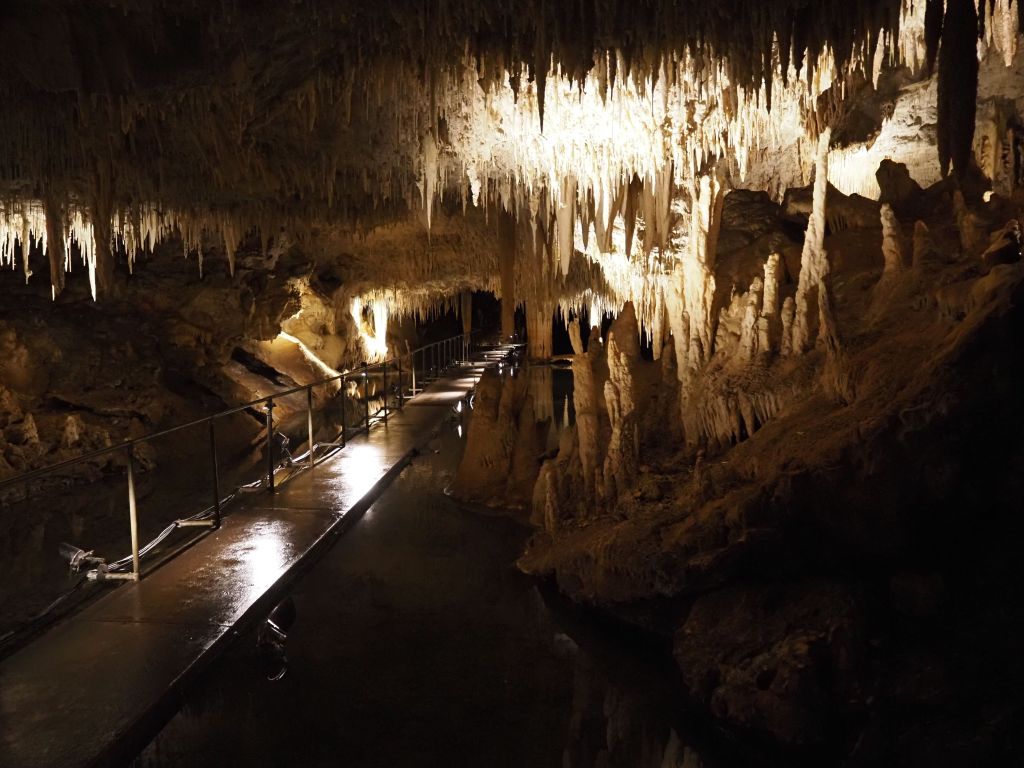 I was very tired from a couple nights of short sleep, perfectly primed to get cranky. Which is exactly what happened as I started to realize I wasn’t going to be able to surf, and on top of that found out that, like all touristy places, Margaret River is pretty aggressive about squeezing out every last dollar and not letting you float around and free camp and whatnot. So I was in a bit of a foul mood when I mercifully found a national park campground (still more expensive than the standard ones, annoyingly) nestled in a beautiful area of Karri forest. Karris are a type of eucalyptus found around the southwest that grow very tall. After so much time in desert and scrubland it felt amazing to wander into real, bonafide forest. So after a good night’s sleep I kicked the crankiness and spent a couple of nice days relaxing and checking out the forest. I also discovered that this area has a huge network of caves, two of which I toured. They were spectacular!