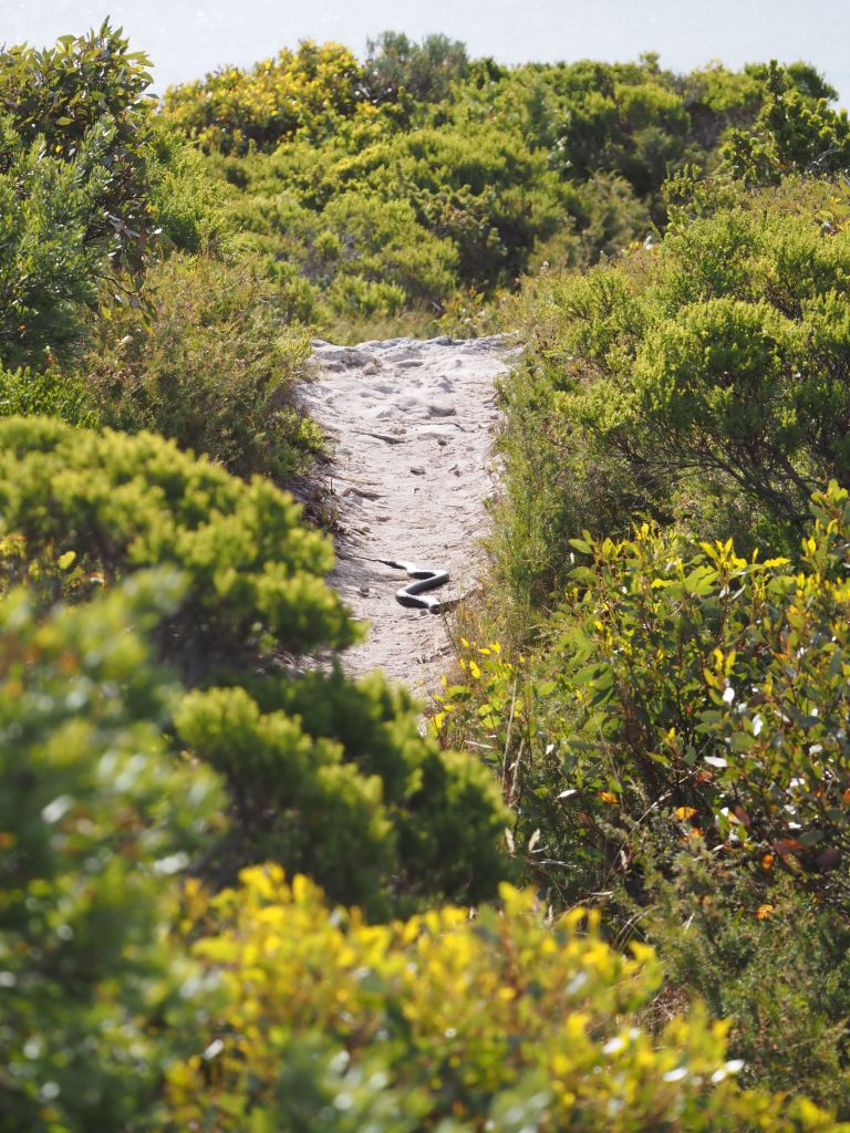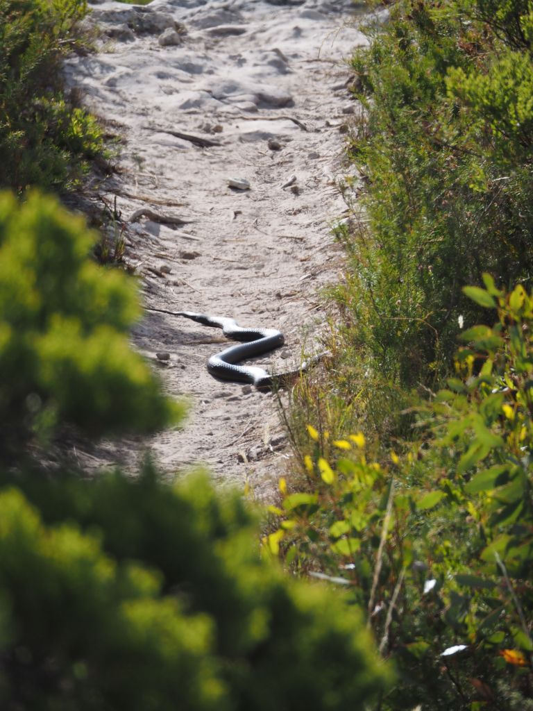 The next day, after a very slow and relaxed morning, I went over to Albany to hike Bald Head. This hike came very highly recommended and it absolutely lived up to the hype. The trail follows a ridge over granite hills out to the end of a narrow peninsula. There are lots of different viewpoints of a variety of beaches with incredible blue water, and the views out across the bay and of Albany itself are also magnificent. It’s just hard enough to give you a sense of accomplishment, but easy enough not to leave you feeling ragged. And, after wondering where they’ve been during my whole year in Australia, I saw two snakes! The second one made for quite the panorama, basking in the middle of the trail, and it immediately jumped out of the landscape when I came over a rise, even several twists and turns down the trial. Don’t ask me what type they were, I don’t have a clue, but I know that they both glistened pretty menacingly in the sun.