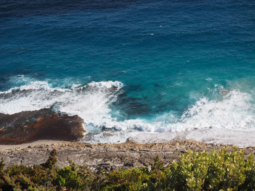 Well, I absolutely loved the Nullarbor. It certainly is flat, and the road is straight for long stretches, but it’s not nearly as barren as I’d been led to believe. It’s what I’ve come to feel is pretty classic Australian desert scrub bushland, and as the kilometers roll by you can see subtle shifts in the size and density of the bushes. There is a specific area called the treeless plain (again, descriptive if artless naming), but otherwise there are a decent mix of trees, huge bushes, and small shrubs. On the Western Australia side the road follows the coast to the south with a bluff rising up in the desert to the north. Right before the South Australia border the road climbs that bluff, which pretty suddenly turns into a couple hundred kilometers of cliffs being pounded by the surf of the Great Australian Bight, turquoise where it meets the land and darkening to a deep navy blue towards the horizon.