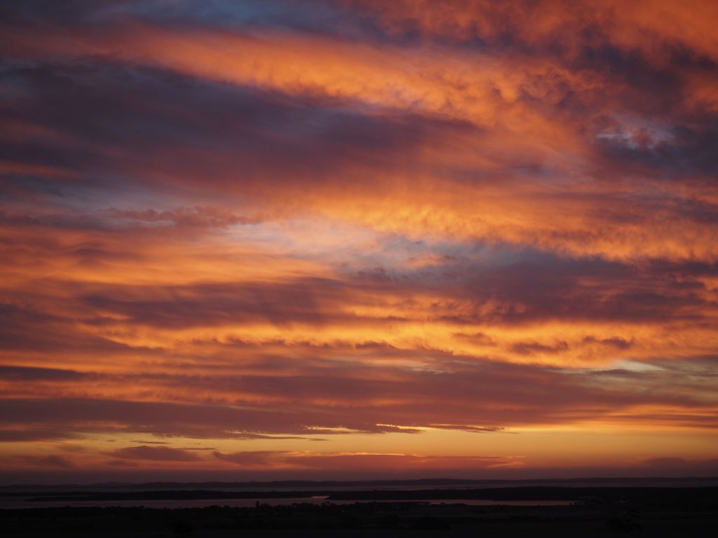 But of course all good things must come to an end, and as the saying goes, after cliffs, farmland. So much farmland. Agriculture is a big deal in SA, and, yeah. The next few days were mostly spent trying to stay awake and focused as field upon field rolled by. This was what people should’ve warned me about. One night camped next to a field I at least got treated to a truly spectacular sunset.