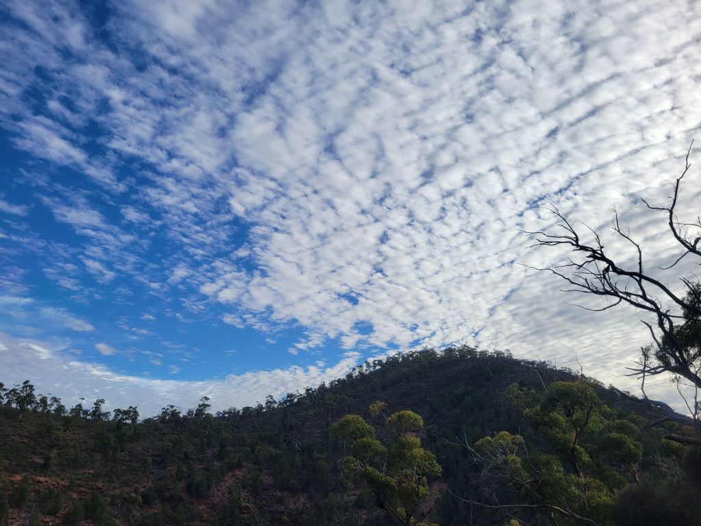 I decided that I needed a bit of a break the next day so I headed down to Albany for a relaxed day in town. I followed the classic van life circuit, shower—coffee shop—library, and generally just recharged. Then I headed back up to Stirling Range to be ready for a semi-early start on Bluff Knoll the next day. Bluff Knoll is by far the most popular hike in the park, with the huge parking lot and stretch of boardwalk to prove it. I was excited for the standard hike, but extra excited because there is the option of continuing along a ridge trail that goes east along the rest of the Stirling Range to the edge of the park. It’s over 20km point to point, so given that I would have to hope to hitchhike back from a barely used trailhead (and, honestly, that I’m in terrible shape) I made the wise decision to just hike out as far as I could handle and then turn and head back. It was a bummer looking at the ridge stretching out ahead of me so invitingly and having to turn around, but it was definitely the right move that day. And I still had an awesome time on the hike.