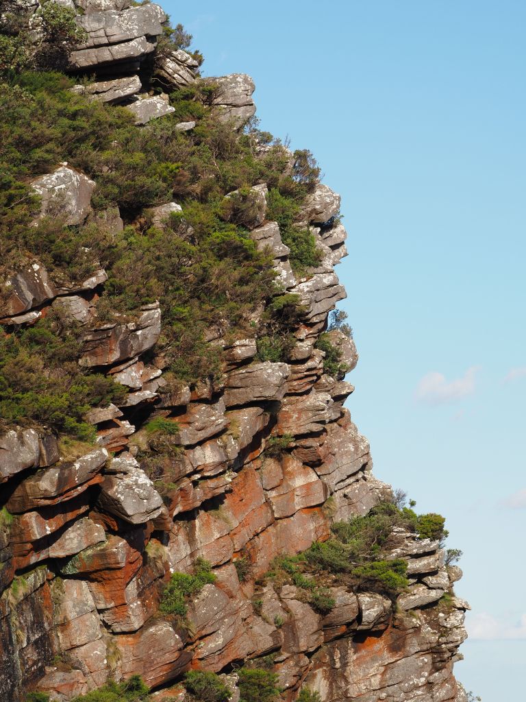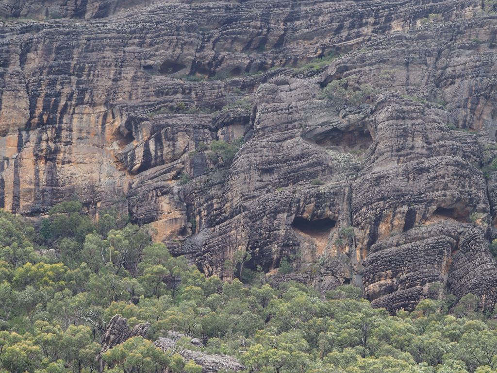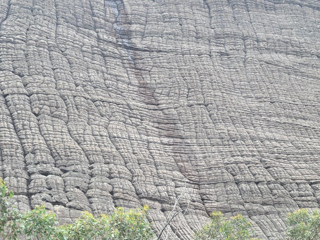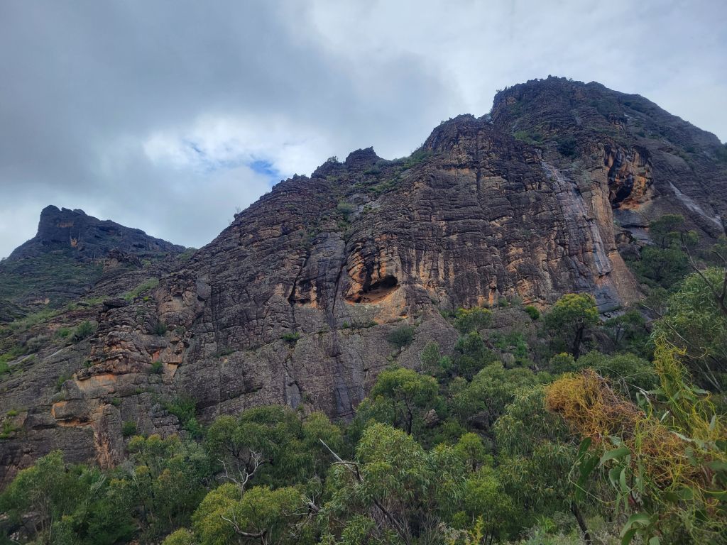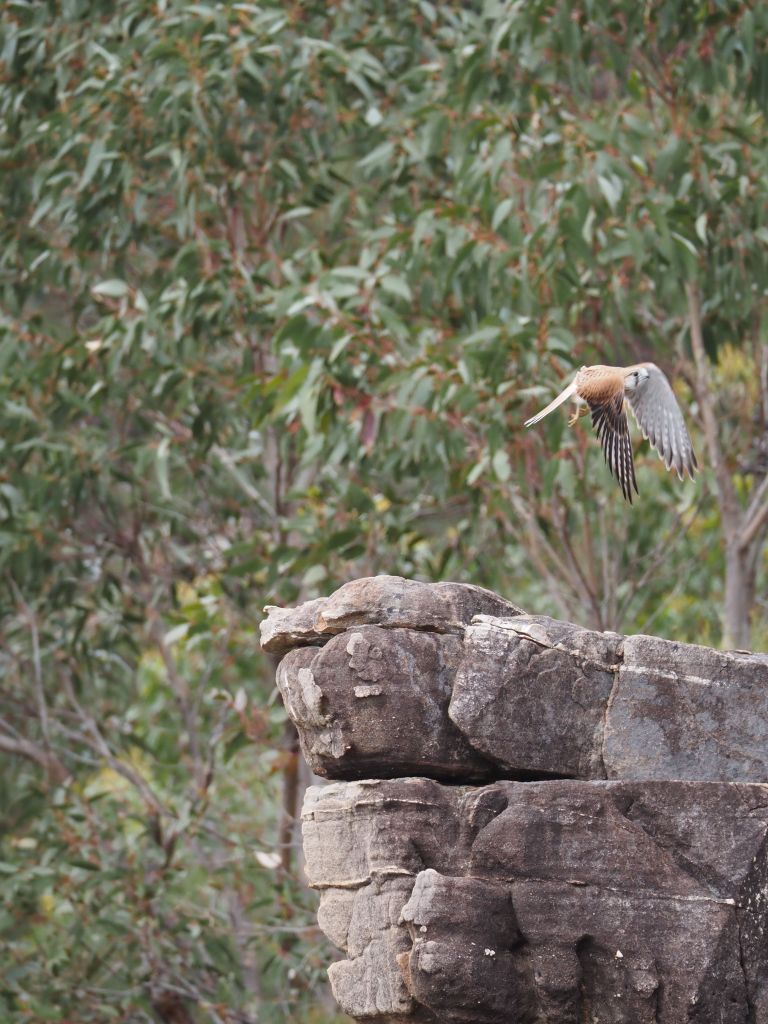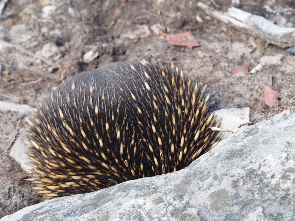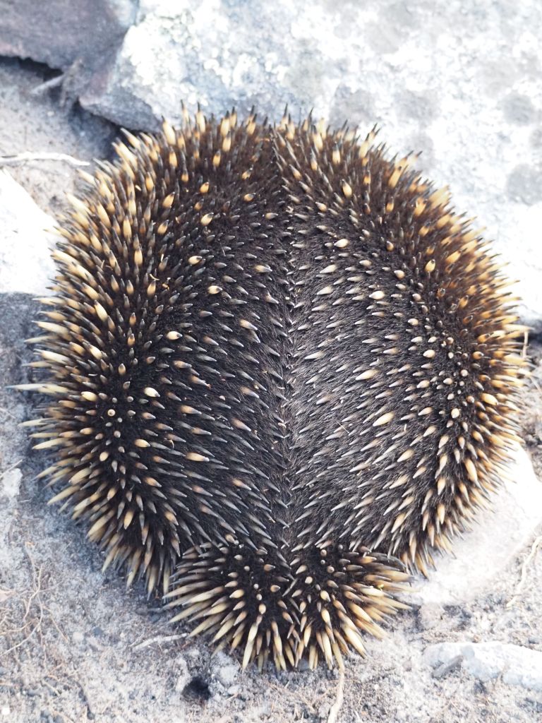 The next day I headed out to hike Mt Gar, dubbed much less poetically by the white people as Mt Difficult. It was an absolutely stunning hike. I don’t know the geology of the area but the rock formations were just astounding. One in particular was a large face made of black rock perfectly criss-crossed with cracks. I don’t even know why I’m trying to describe it, and the pictures certainly don’t do it justice, but I just could not stop staring at it. I also got to spend some time hanging out with a decidedly unbothered echidna and saw a nankeen kestrel crying from a cliff edge, so that was cool.