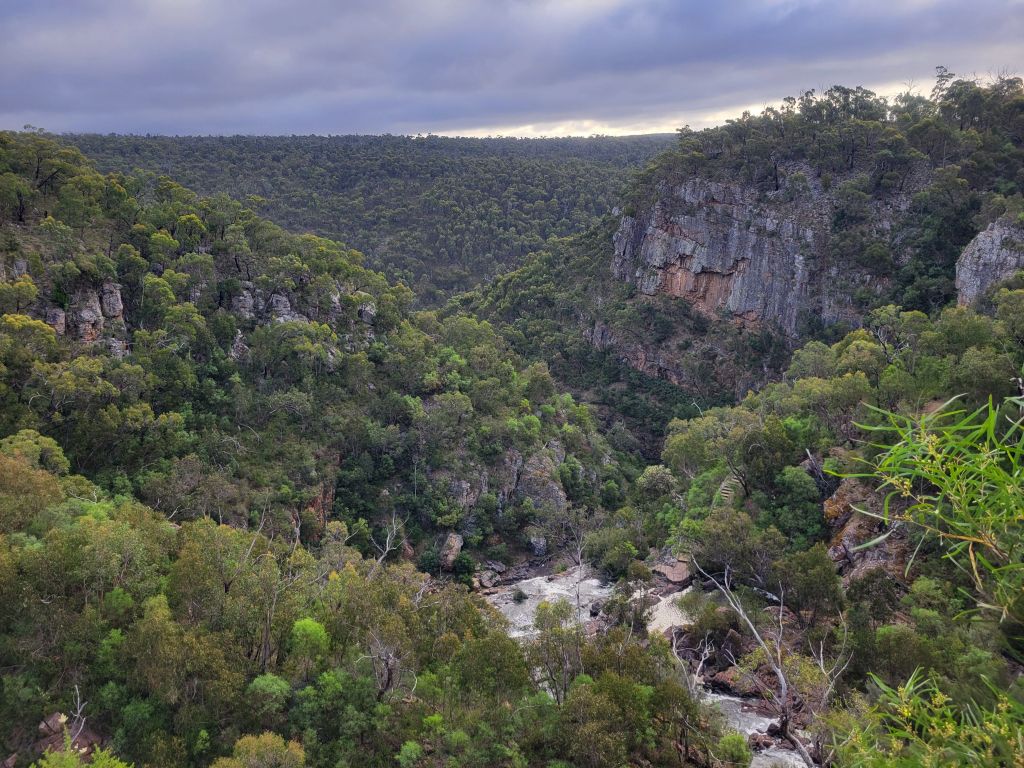 That was it for South Australia. I spent the night at a beautiful free camp next to a waterfall which I checked out the next morning with my morning coffee, friendly neighboring farm dog in tow. Now I had a few days to check out Grampians National Park and the Great Ocean Road before I needed to be in Melbourne to meet up with my dad and his girlfriend Jean and to watch some tennis. I went to the Grampians first. I have to say, I’ve been pretty annoyed with my experiences at visitor centers so far in Australia—they seem to be oriented entirely around convincing you to stay in stupidly expensive caravan parks and trying to scare you out of doing any substantial hikes. The Grampians Visitor Center was a delightful exception to this rule. The ranger gave me great advice about where to camp and which hikes to do, and I left feeling good about the few days I had planned. Since I’d gotten there in the early afternoon I headed for camp and went for a short stroll to check out a few waterfalls cascading over beautiful red rock faces.
