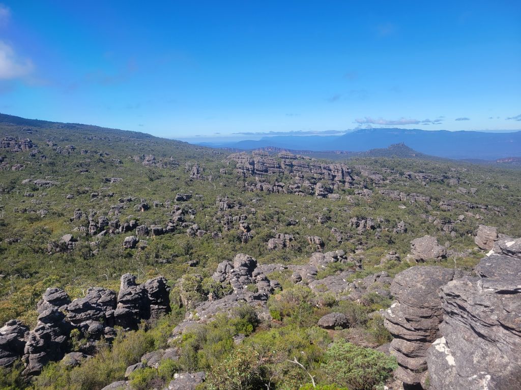 The past two weeks have consisted of either hiking or just lounging around little towns, planning next moves or just relaxing. There’s not much to say about the relaxing, so we’ll just go through some of the nice hikes here. First I did the southern circuit in Cathedral Range State Park. It was a great hike with some time in the forest, some fun rock scrambling, and a long stretch clambering around the rocks along a ridge. No snake sightings, which was probably for the best—there were some sections in the rocks where there was truly nowhere to go.