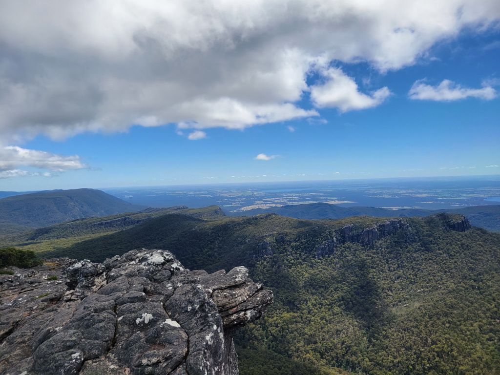 I changed campsites that night to a slightly more isolated one in the middle of the park. My reward was a morning coffee stroll looking at approximately a million billion kangaroos grazing away. Once I was properly caffeinated I headed to a lookout, which turned out to be completely clouded in, but still a nice spot. Then I went over to Mt Rosea for my first hike of the day. It was really nice, beautiful forest and rocks, and a great view at the top. After that I headed into Halls Gap, the town in the middle of the park, for lunch and to agonize over whether to continue south or stay another day in the park. Ultimately I decided to stick with my original plan, head south for another hike that afternoon, and then call it for the Grampians.