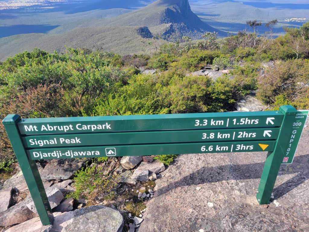 Tell me, which way is this sign telling you to go to get to Signal Peak?!