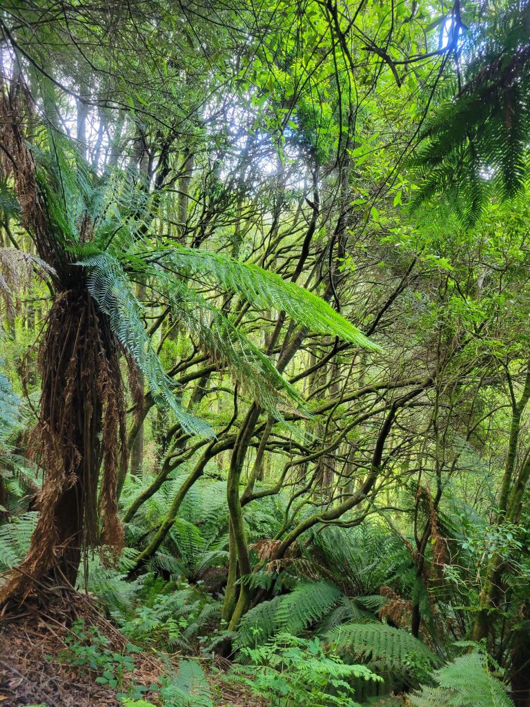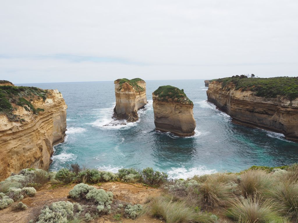 The next day I got up and headed to Triplet Falls, another gorgeous walk through damp tree fern and mountain ash forest to a thundering waterfall. This walk is a little bit more out of the way and I had it completely to myself in the morning. After these tastes of the forest it was back to the coast—the plan was to finish driving the Great Ocean Road and then cross Melbourne to go stay with my friend Georgia’s parents. Georgia and I met out in WA but she grew up next to Melbourne. When I said I was heading that way she told me her parents would be happy to host me for a bit. Sure enough, they gave me a very warm welcome, with a delicious dinner waiting when I arrived and lots of good conversation over a drink or two. The next day I got myself, my van, and my laundry all clean, and had a fun night hanging with them and a few friends they had over for dinner. It felt great to get a little bit of that family feel and social interaction again.