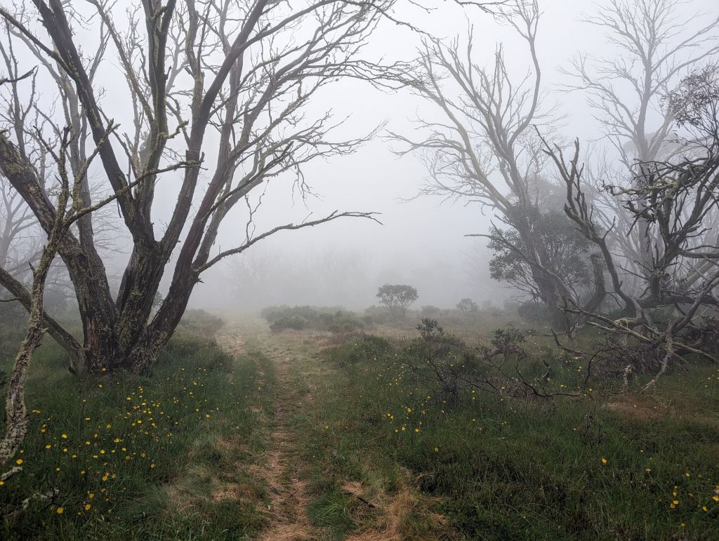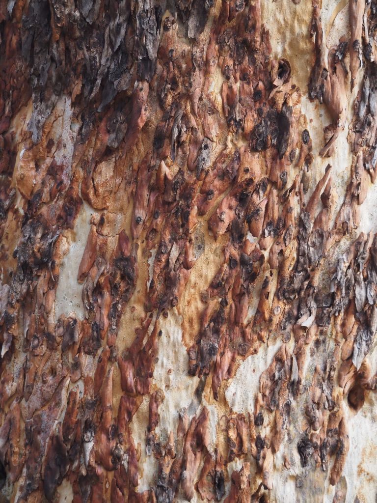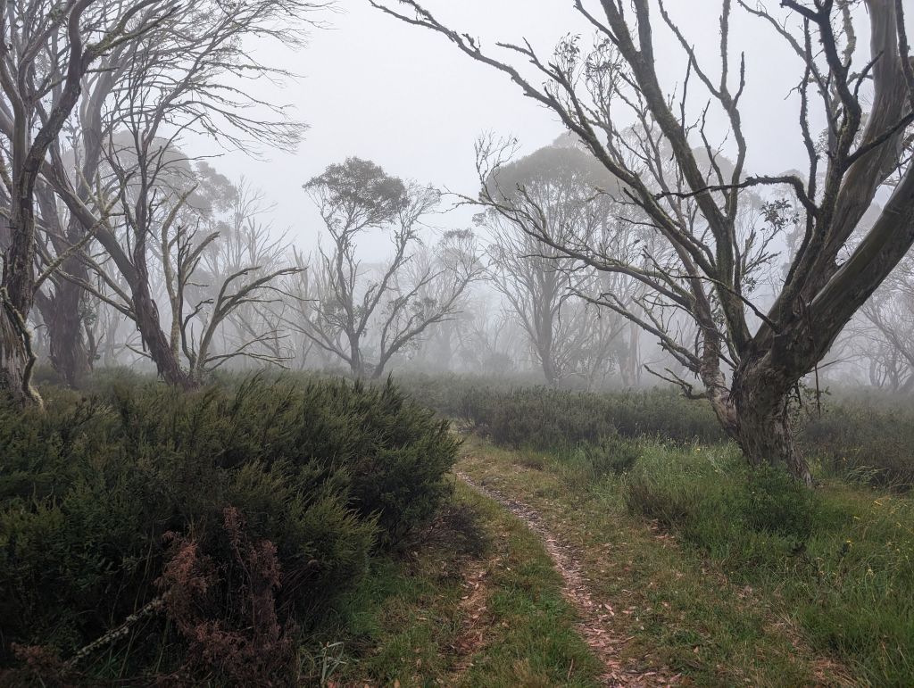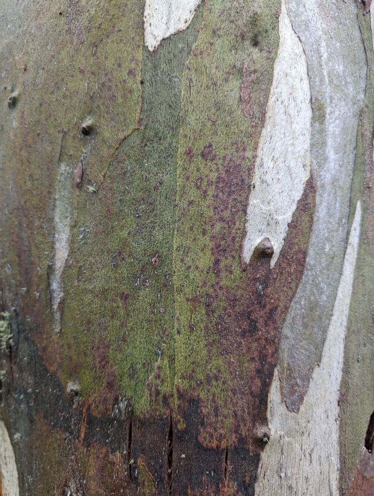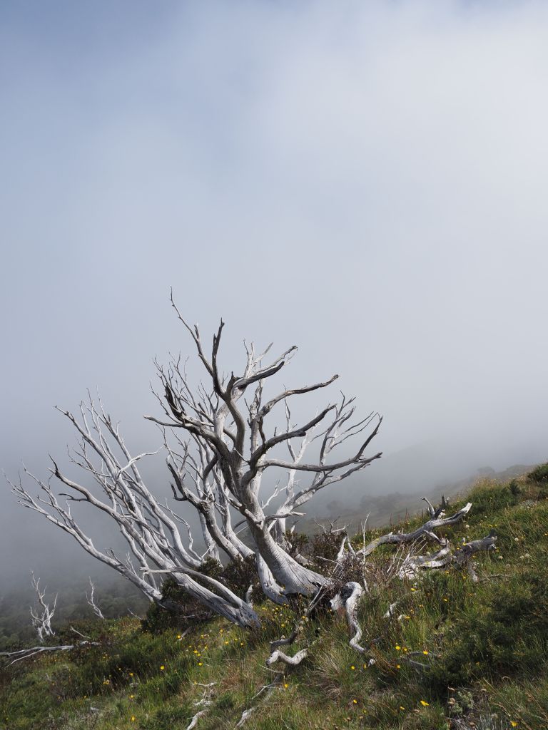After Mt Buffalo the forecast was for a thunderstorm and I decided not to risk 6-7 hours on a ridge in bucketing rain. I spent most of the day in the van reading and relaxing, but I managed to get out for a couple of misty strolls during breaks in the rain. I really just can’t get enough of all the different eucalypts’ bark.