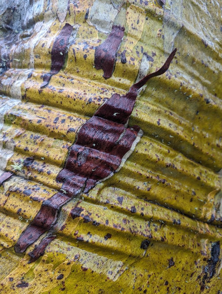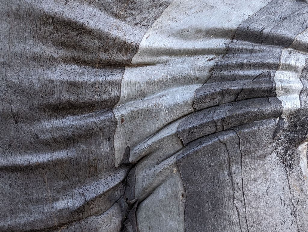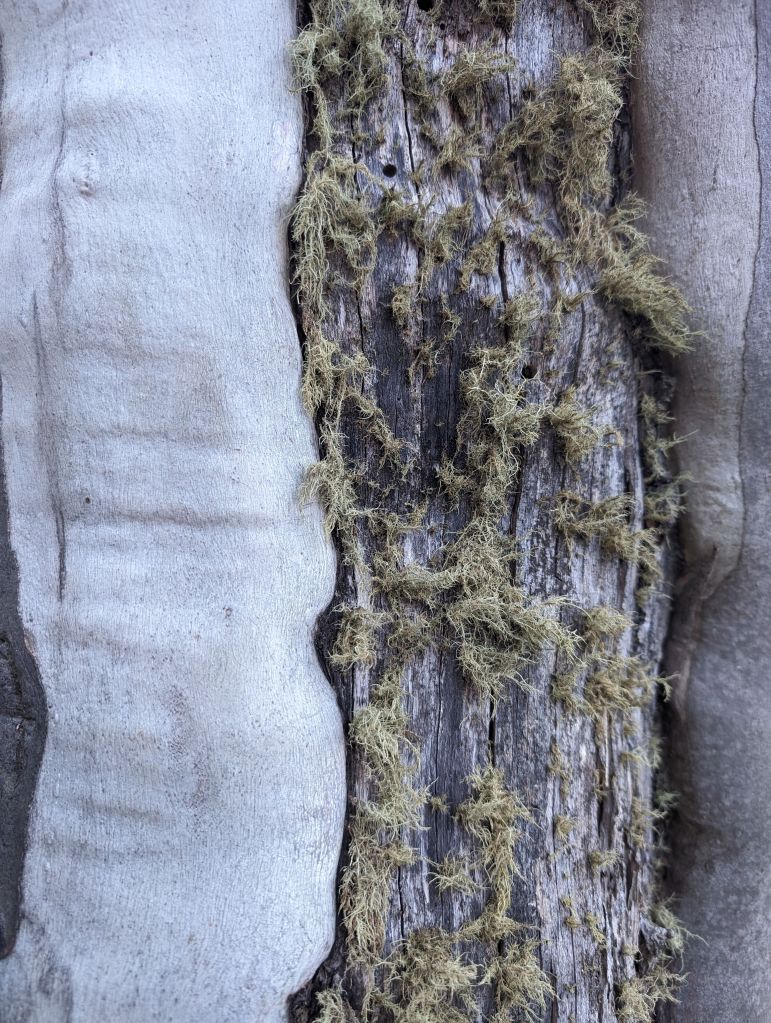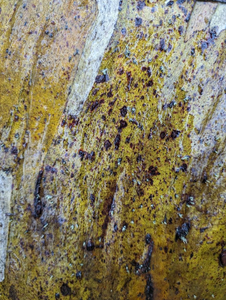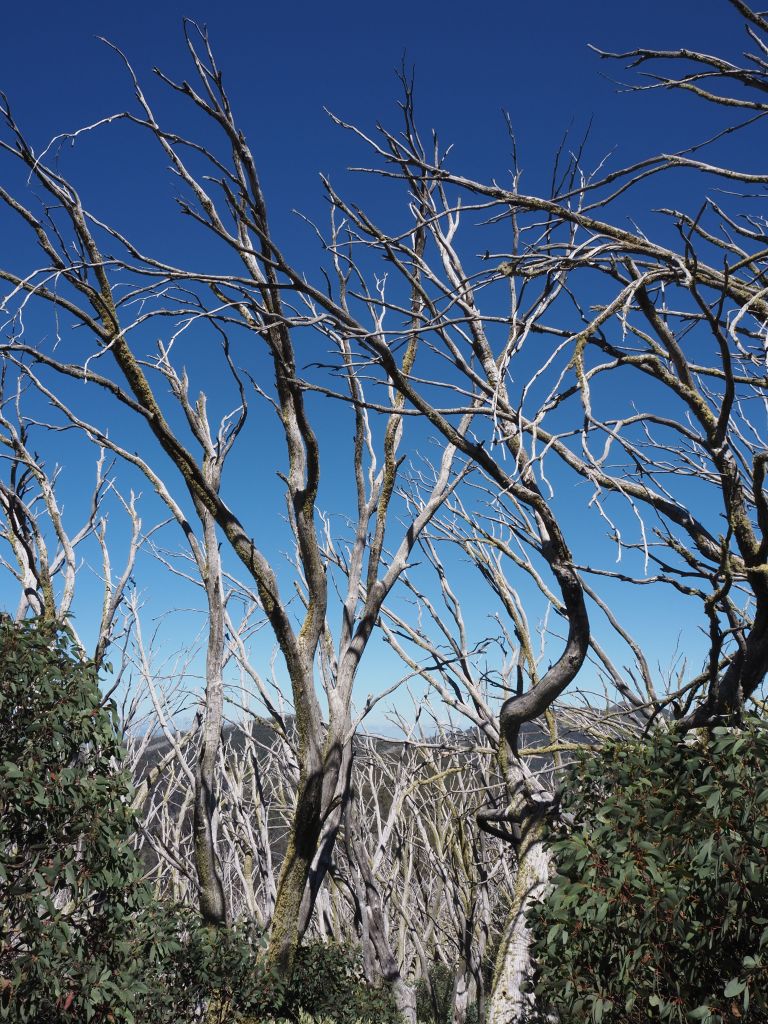 After Mt Buffalo the forecast was for a thunderstorm and I decided not to risk 6-7 hours on a ridge in bucketing rain. I spent most of the day in the van reading and relaxing, but I managed to get out for a couple of misty strolls during breaks in the rain. I really just can’t get enough of all the different eucalypts’ bark.
