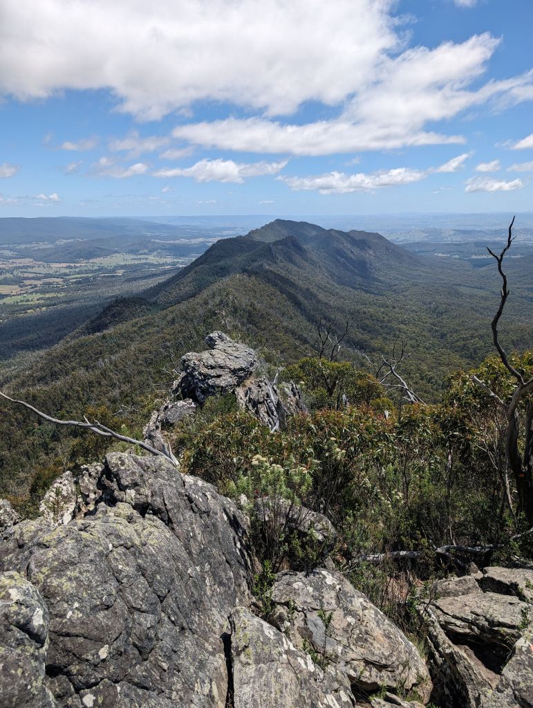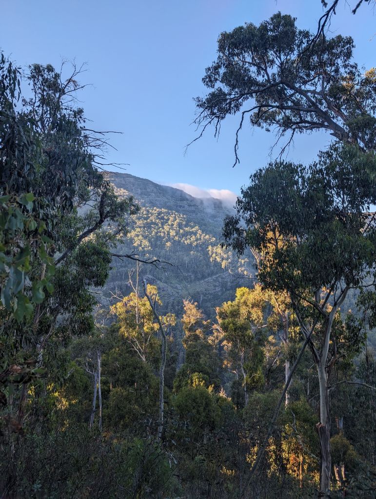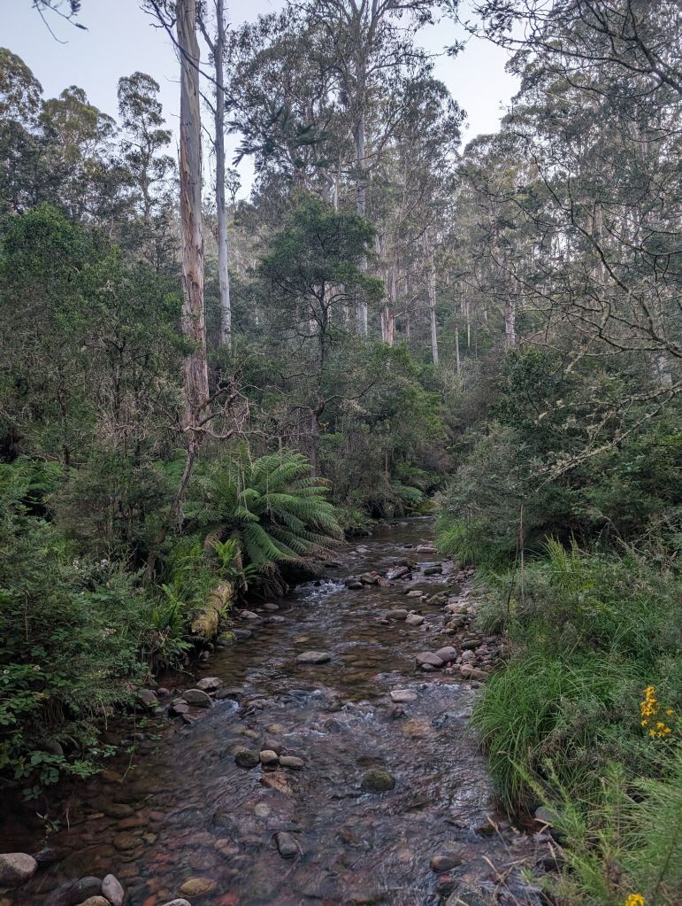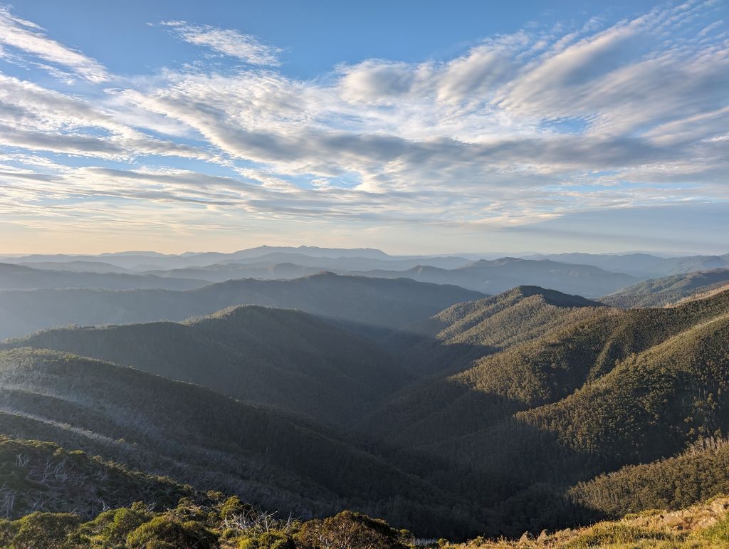 That kahuna was the hike to Mt Speculation via Mt Howitt and the Crosscut Saw in Alpine National Park. It was a solid undertaking—36km, about 2300m of elevation, 14 and a half hours all told. It had been a while since I’d done a really big hike like that and I was a bit nervous going into it. I did learn from the past though. Bring and eat way more food than you need, and a water bottle with some cold brew in it goes a long way when that afternoon swoon hits. It was a gorgeous hike. Really beautiful creekside trail to begin with, through towering mountain ash forest and between the giant ferns. Then a steep climb up to Mt Howitt and its huge views, and the rest of the trail undulating up and down along the ridge out to Mt Speculation, harder than the elevation profile suggested. I was solidly worn out by the end, but pleasantly surprised at how ok my legs felt the next day—just goes to show that eating and drinking the right amounts does in fact make a difference.