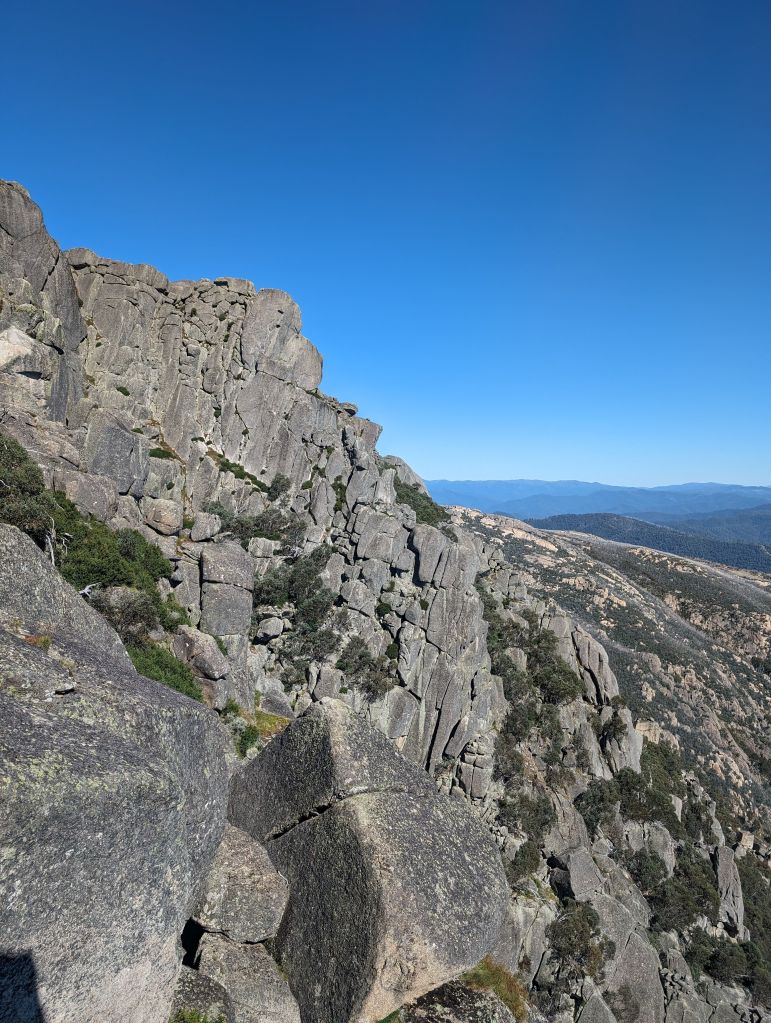 After a few lazy days and some beautiful riverside campsites the next move was to explore Mt Buffalo National Park. It’s pretty much one steep winding road that climbs up this mountain, with several waterfalls in the lower section and lots of boulder piles to scramble on higher up. I went one day for a couple of quick looks at different falls, and came back the next day to walk the Back Wall track at the very far end of the park, getting views back to the highest peak in the park and also across to the other mountains. It was a chill hike on a shortish, flattish trail, which was perfect for that day. After another waterfall visit for a quick dip on the way back (the need for a shower was getting pretty dire at this point) I kept it moving to the next part of Alpine National Park.