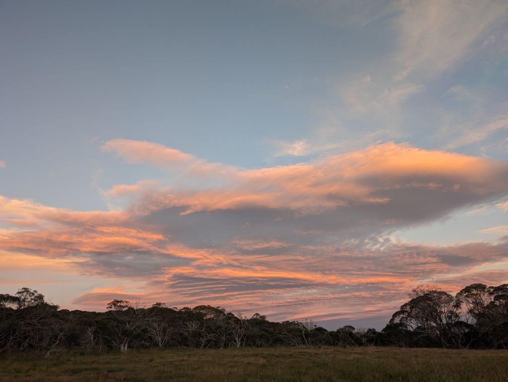 The last hike I did was Mt Feathertop via the razorback. I’ve come across several razorbacks already in Australia, it seems to be the default name for any ridge. Which is exactly what this hike was all about—basically just 11km each way walking along a ridge, with huge views to either side. It was partly cloudy all day so I never got the full, unobstructed views, but that was more than made up for when I got to watch the clouds streaming through a saddle in the ridge. On the way back I spent a while doing my best to photograph the kestrels that live near the beginning of the hike. It’s astonishing watching them—their ability to hover in a precise spot, sometimes flapping their wings but sometimes motionless, just making micro-adjustments to the position of their wings and letting the wind hold them up, seeming to hang suspended from a string. And then how fast they suddenly veer off, dive, loop around. It makes for beautiful watching but very difficult photographing, and between their aerobatics and the clouds streaming through I’m not sure I got a single photo in focus, though I still really enjoyed the attempt.