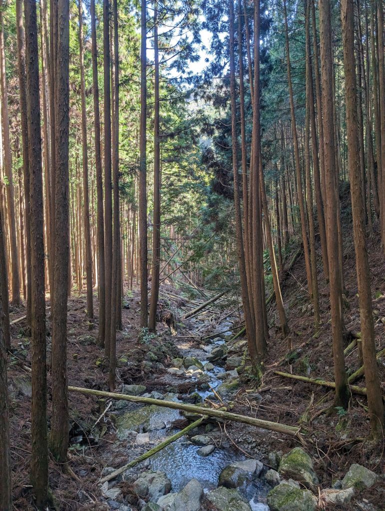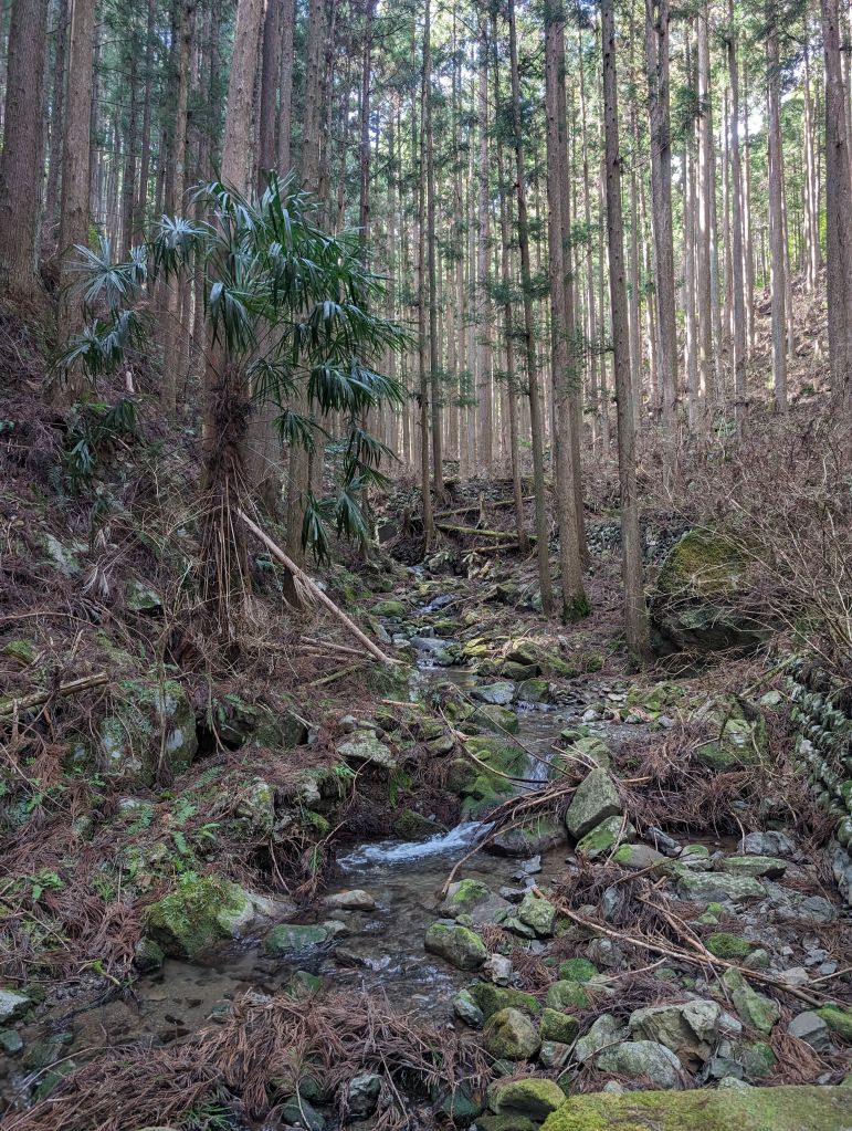 The next day we hopped on a bus to Takijiri-oji, one of the major shrines along the route and our starting point. We poked around the info center and gift shop for a little and then hit the trail, which was everything I’d hoped for. Soaring cedar trees, mossy rocks, streams, walls made of perfectly interlocking stones. The whole thing was picturesque. We eased into it with our first day— about 8 miles, but a decent amount of elevation gain. Our destination was a town called Chikatsuyu, and we arrived a little after 3pm. This gave us lots of time to settle in to our beautiful guesthouse, go for a quick stroll around town, and then get into our much nicer yukatas for dinner and a relaxing evening.