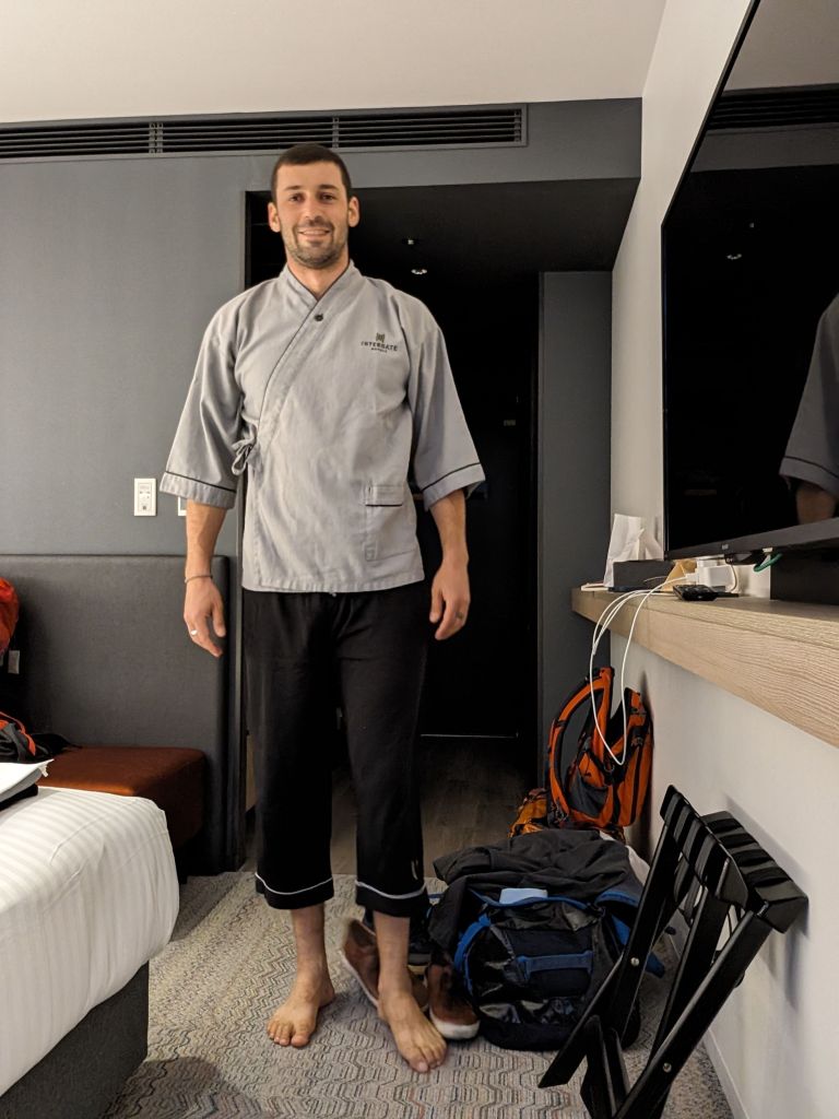 After the surprisingly comfortable trip it was, of course, time for a surprisingly uncomfortable hotel stay. If you chatted with me at all during my last month in Australia you know that I was pretty much underwater stressing about selling my van, so I did basically no research and preparation for Japan. The one thing I managed was to book a cheap hotel for my first two nights so that I’d have somewhere to go. I booked it a couple of weeks out and it had free cancellation until just a day or two before, so I told myself I’d check it a bit more thoroughly sometime during that window and adjust if need be. As you can imagine that never happened, so it was only while sitting in the airport, the free cancellation window firmly closed, that I discovered that in Japan pretty much all heating is provided by AC units in the rooms. When I was booking I’d seen options for rooms with or without AC. Savvy, frugal traveler that I am, I said “who the hell needs AC in February in Japan” and booked the really-only-marginally cheaper, non-AC room. So, yes, I spent my first two nights in Japan, where the temperature was already a shock after a year in Australia, in an unheated room. This was not ideal, and some combination of the preceding weeks of stress, the travel, and the cold saw me come down with what has turned into a pretty solid cold. Bummer!