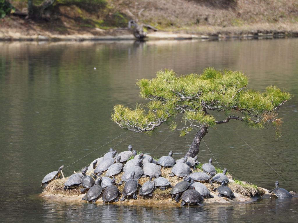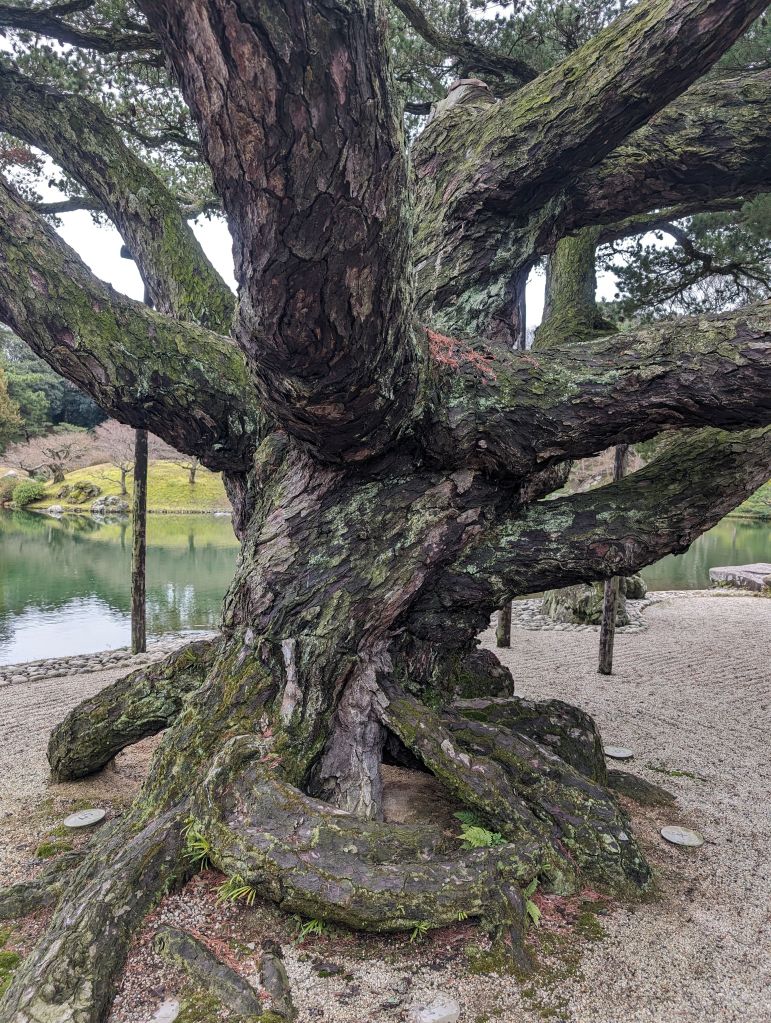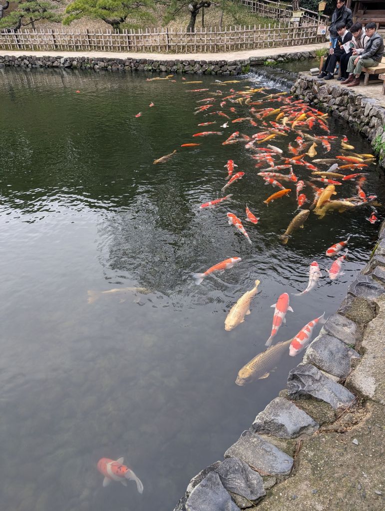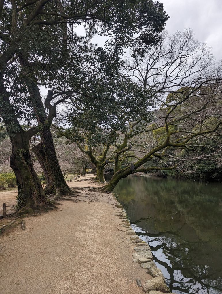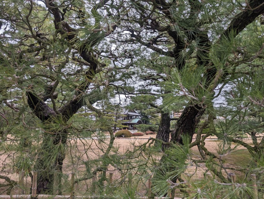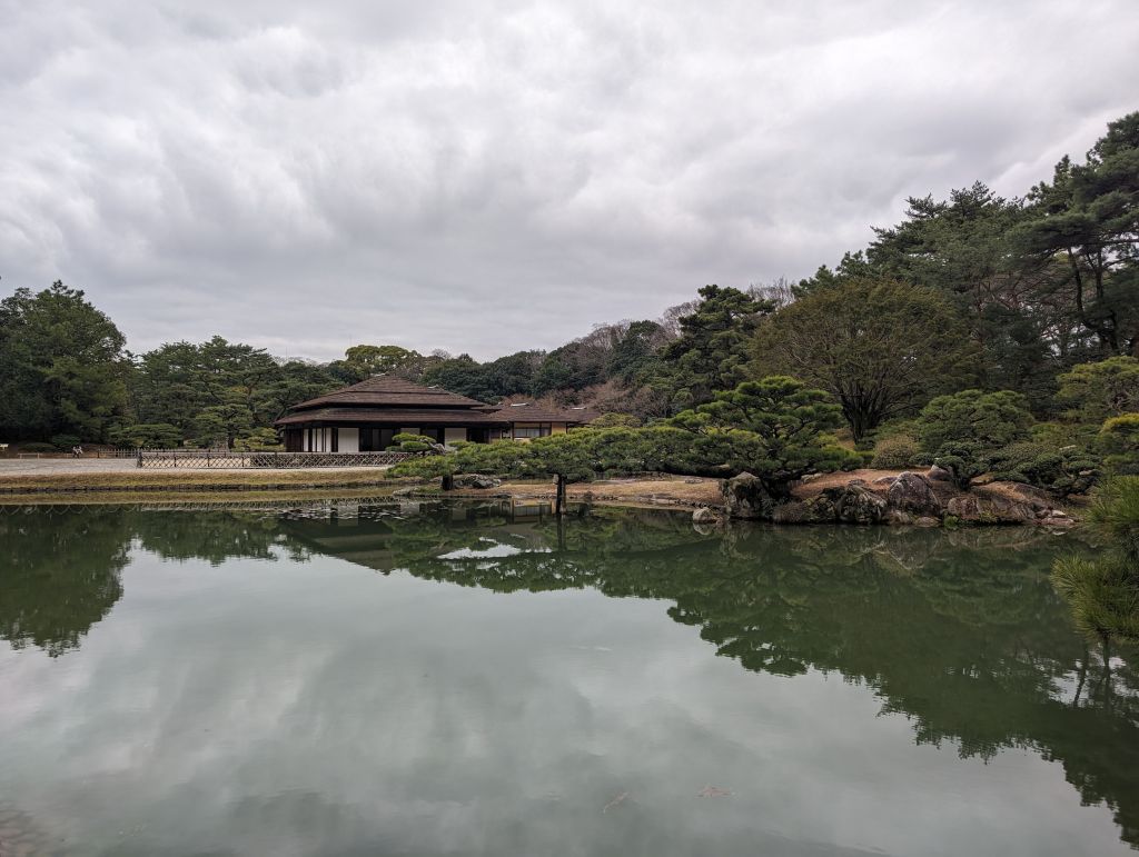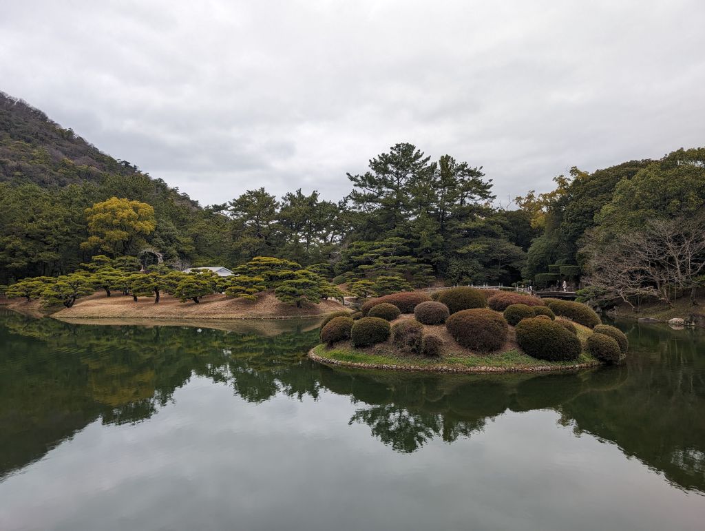 And then, before we knew it, it was time to part ways. Ryo headed home, Rob headed off to Tokyo, and I caught a bus to Takamatsu, on the island of Shikoku. A couple of people recommended Shikoku as a close, easily accessed area that doesn’t see as much foreign tourism and might be a bit more off the beaten track, which is exactly what I’m looking for on this trip. So far that seems pretty accurate—I’ve seen one other white person in my day and a half here, and have already had several locals be very surprised and excited to see me. Takamatsu is certainly a legitimate city, but nothing like the scale of Osaka or Tokyo, and I’m enjoying lots of udon, which the area is known for. My cold is holding steady these days so I’m mostly laying low and resting, but the one major attraction I did visit was Ritsurin Garden. This was another thing that made a strong impression during my first brief visit to Japan—I absolutely love Japanese gardens. Ritsurin is a huge one with several different ponds and viewpoints, and I spent a couple of hours wandering around and enjoying it.