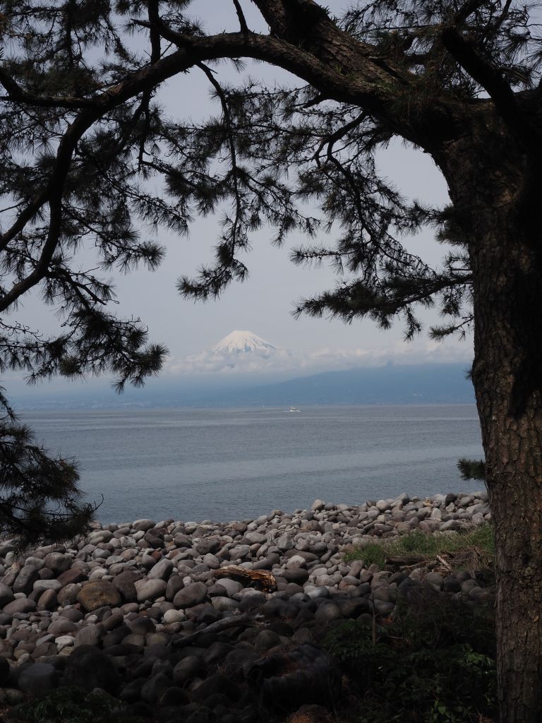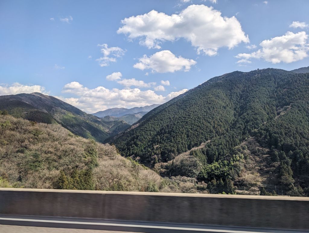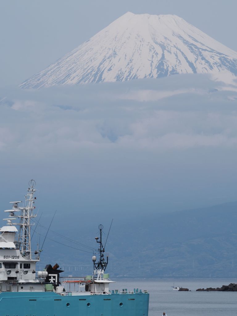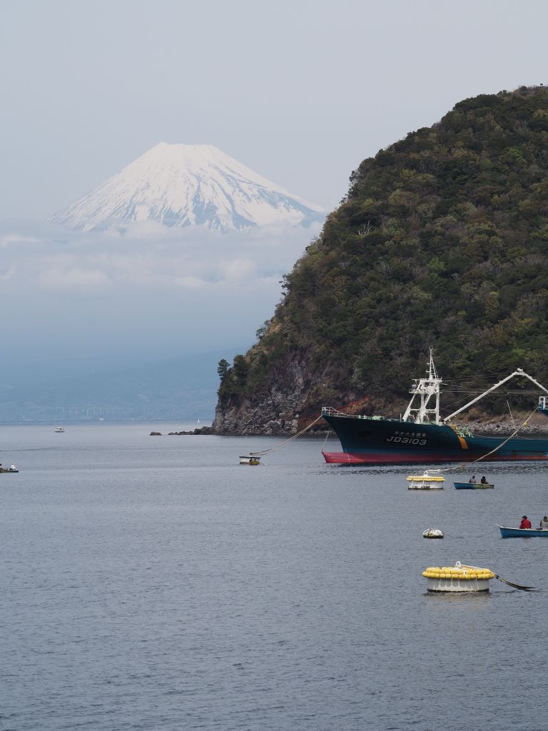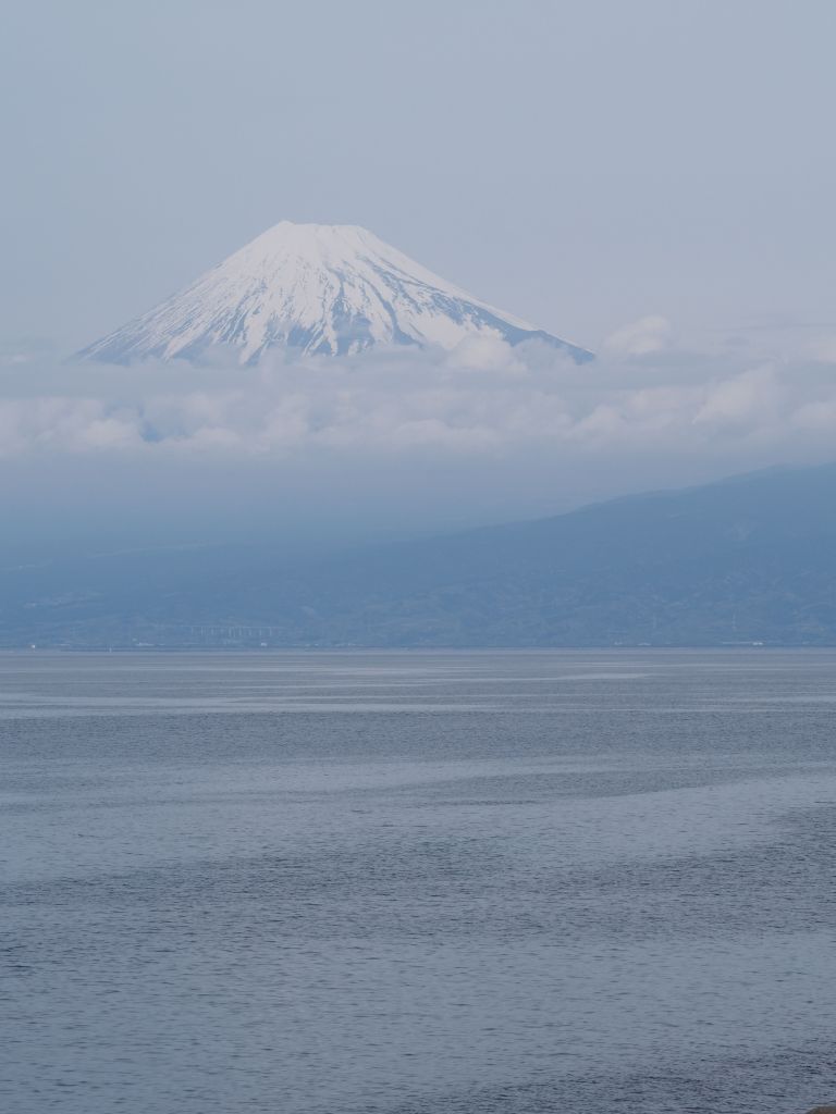 The time in Kyoto went by in a flash, and the next thing I knew I was holding back tears while giving Edith a hug goodbye. Next stop: Fuji. I never got a glimpse of Mt Fuji on my first trip to Japan and was really hoping to see it this time. April weather was always going to make it tricky, so I booked four nights, two in the town of Fuji and two in a tiny fishing town called Heda with views of Fuji across the bay. My Fuji peeping didn’t start out very promising—it was rainy and gloomy on my travel day, and pretty much stayed that way for my whole time in Fuji. The trip to Heda was, again, on a very rainy day. I didn’t like my chances of getting to see Fuji at all, but I did enjoy the drive in to Heda, which winds up through the mountains that were completely covered in clouds that day.
