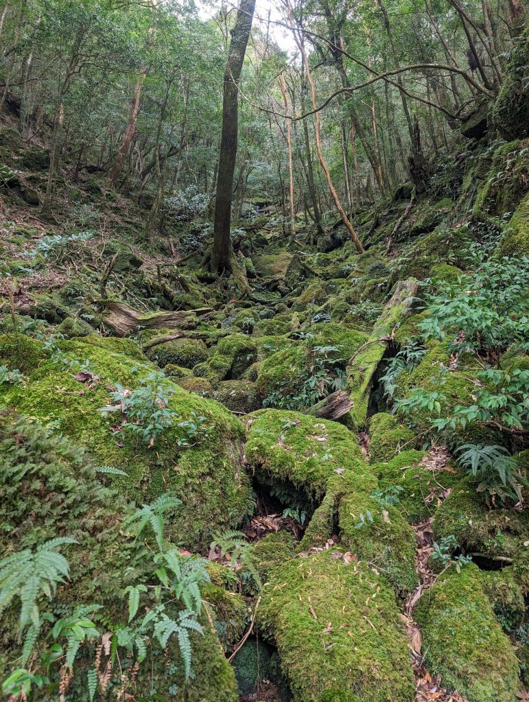 Yakushima is a small island off the southern tip of Kyushu and one of the rainiest, and therefore mossiest, places in Japan. There’s a ring road around the outside and the middle is all just mountain and forest, with the forest getting more protected/untouched the farther inland you go. It’s famous for the beautiful forest, in particular the moss and giant cedar trees, and for the populations of monkeys and deer that hang around. Apparently as a consequence of their being isolated on a small island the monkeys and the deer have both shrunk, making them extra cute. My first day there I went for a nice long hike in the forest, which was as spectacular as advertised. The cedar trees take on fantastical shapes, with huge gnarled root systems and bulky bodies and trees growing out of stumps, all covered in various amounts of deep green moss. There are massive boulders and lots of streams and, once you’ve gotten away from the most trafficked areas, it’s an incredibly peaceful place. For my second day I booked a tour of the island so that I could check out the UNESCO world heritage protected area in the west, which is very difficult to get to using the island’s limited public transit system. The tour was, frankly, quite disappointing, but there were a couple of pronounced highlights, specifically checking out some big groups of monkeys and a couple of spectacular waterfalls.