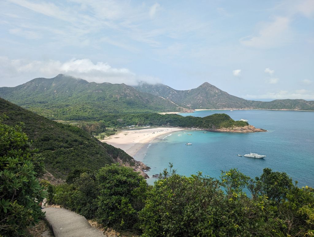 I went for a nice long hike in the new territories. Before arriving I had thought that Hong Kong was all city, but actually it’s made up of several islands, and the part that’s connected to the Chinese mainland is mostly mountains covered in dense green. Look up some pictures of the New Territories in Hong Kong, it’s beautiful! My hike was to the east, in Sai Kung Country Park. It turned out that this is a popular area for both beaching and hiking, and while it’s a ways from Kowloon it’s also accessible by speedboat, so it was quite crowded with both hikers and beachers. The crowds and the fact that the trail was a concrete sidewalk the whole way were a bit of the bummer, but the scenery was spectacular. And for as much as I like to complain about other people, the little beach towns saved me, because if I hadn’t been able to refill my water twice (I ended up drinking almost 5 liters of water and another 1.5 liters of electrolyte drink) I would’ve dropped dead from dehydration.