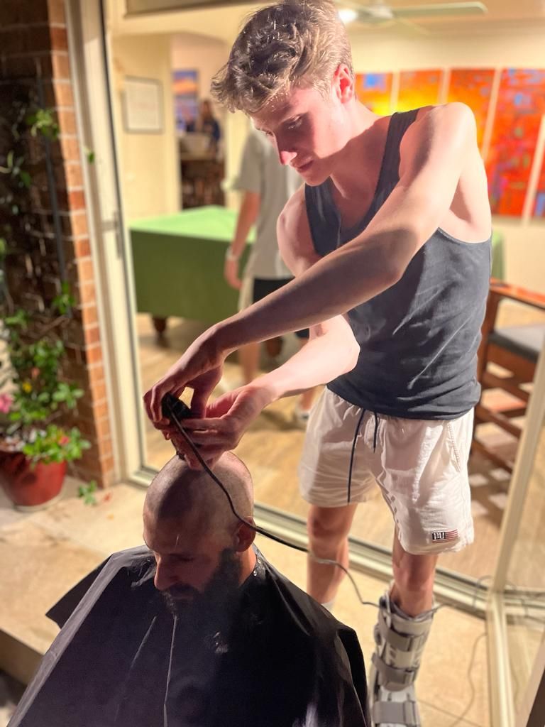 The first major development is that the Moss outpost in Syndey has a set of hair clippers and thus enabled me to continue to pursue a lifetime of bad decisions, in this case shaving my head completely bald. Mike’s woeful comments about how nice my hair is couldn’t stop me, and we ended up doing it family bonding style, with each of Aaron, Ben, and Emily taking a turn to help shear me. Mike, as always, documented the process. Opinions will vary but I have to say, I’m not as disappointed with the results as I perhaps expected to be!