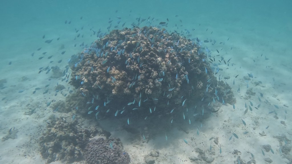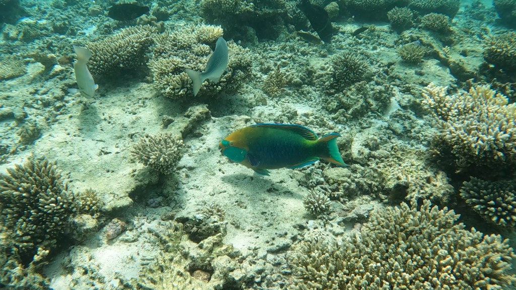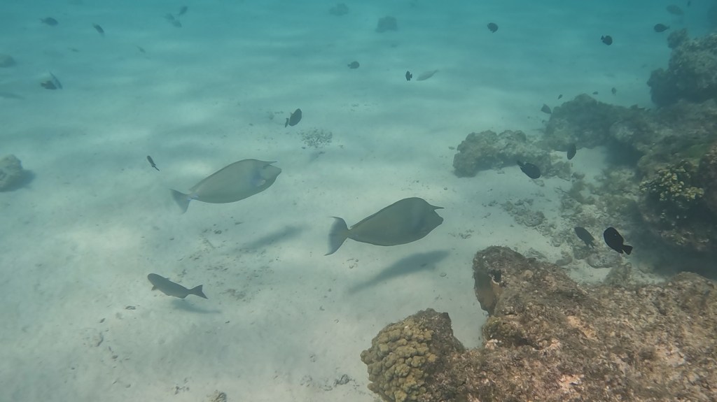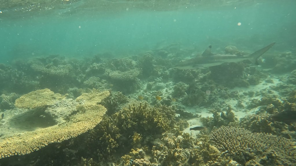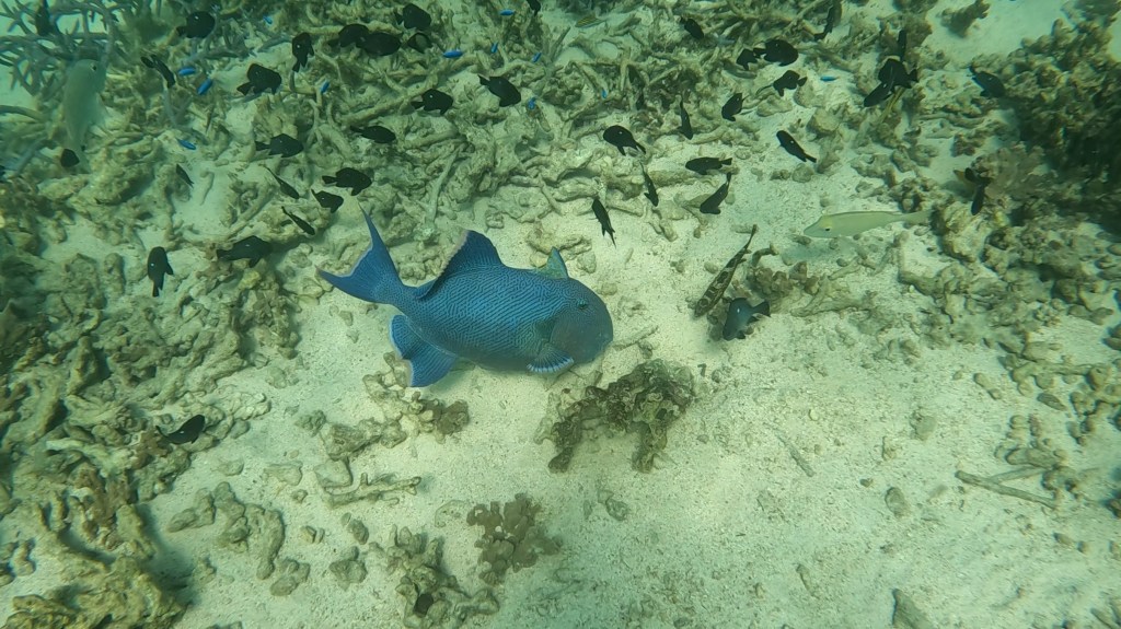 The saving grace of all this was that the main activity I was interested in, snorkeling, solved all these problems. So the thing to do was just spend 6 hours every day snorkeling, covered up as much as possible to blunt the sizzling sun. And the snorkeling here really is amazing. I saw buckets of turtles, lots of skittish reef sharks, tons and tons of fish, sea cucumbers, some octopus, huge groupers, fields of beautiful coral, one very well hidden stonefish, and probably much more I’m forgetting. You can take a look at a handful of videos here.
