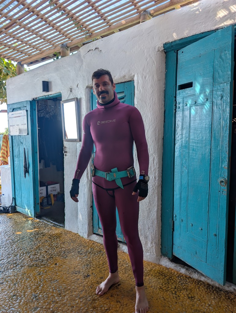 My 2024 stay in Amed ended quite well. I finished up the coaching program and was able to set a new personal best, getting past the problem that had been stopping me. I would have loved to repeat some deeper dives and/or try to explore a bit further, but I ended up getting a cold and had to leave things where they were for the time being. After I recovered I started looking around for a job, and was able to get a foot in the door at Apneista, the oldest school in town, where I’d been doing my self-directed training. After a short trial period I left with things a bit uncertain—the trial went well, but there is a limit on the number of foreign work permits the school is allowed to have at any one time, so I had to wait and see if a spot would open up for me.